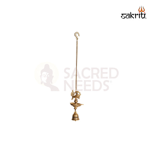 Brass Chandelier/Anaya Vilakku – 14 Inch Traditional Brass Hanging Deepam for Temple Lighting