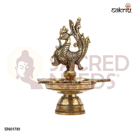 Steel Chandelier/Anaya Vilakku – 14.8 Inch Tall Anaya Deepam Lamp for Spiritual Ambience
