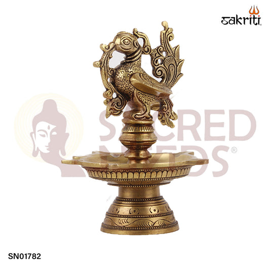 Brass 5 Mukh Annam Vilakku – 9.6 Inch Traditional Five-Spout Oil Lamp with Annam Bird Design