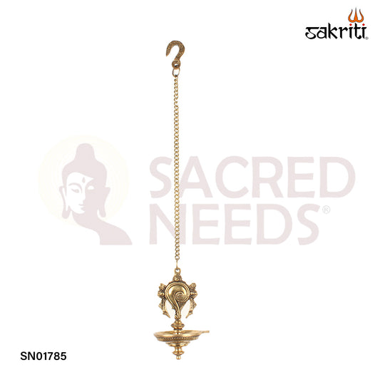Brass 5 Mukh Shanku Vilakku with Hanging – 21 Inch Conch Design Deepam Lamp for Devotional Use