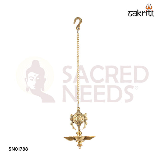 Brass One Face Hanging Vilakku – 21 Inch Pooja Lamp for Temple or Hallway