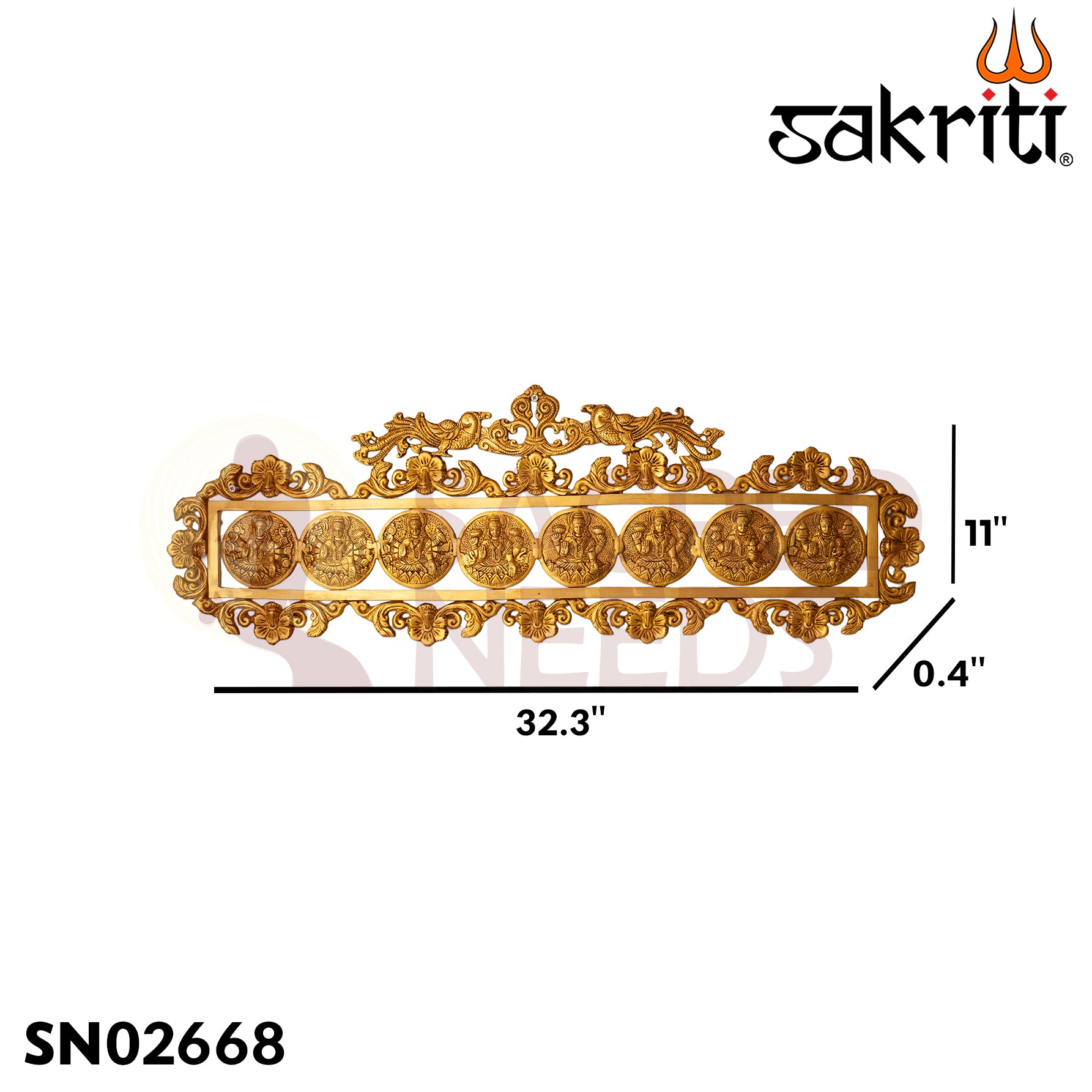 Enhance your sacred space with this 11-inch Brass Astalakshmi Plate, featuring the revered Lakshmi Devi. Perfect for home or mandir, this decorative pooja plate combines traditional craftsmanship with spiritual significance. Its durable brass construction ensures longevity, making it ideal for daily worship and special occasions. Celebrate prosperity and divine blessings with this elegant and meaningful addition to your pooja collection.