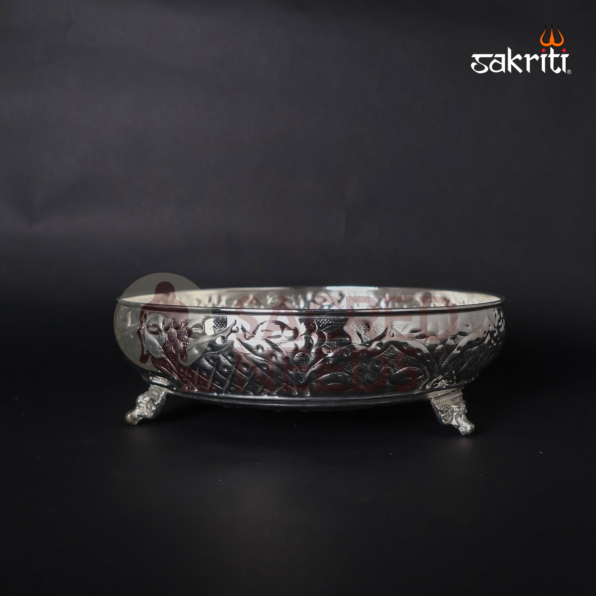 The Brass Dotted Plate with Leg combines elegant design with functional stability. Crafted from durable brass, its intricate dotted pattern adds a traditional touch, while the raised legs provide a distinctive display and ease of use. Ideal for serving or as a decorative accent, this plate enhances any setting with timeless charm and lasting quality. Perfect for those seeking a unique, artisanal piece to elevate their home decor.