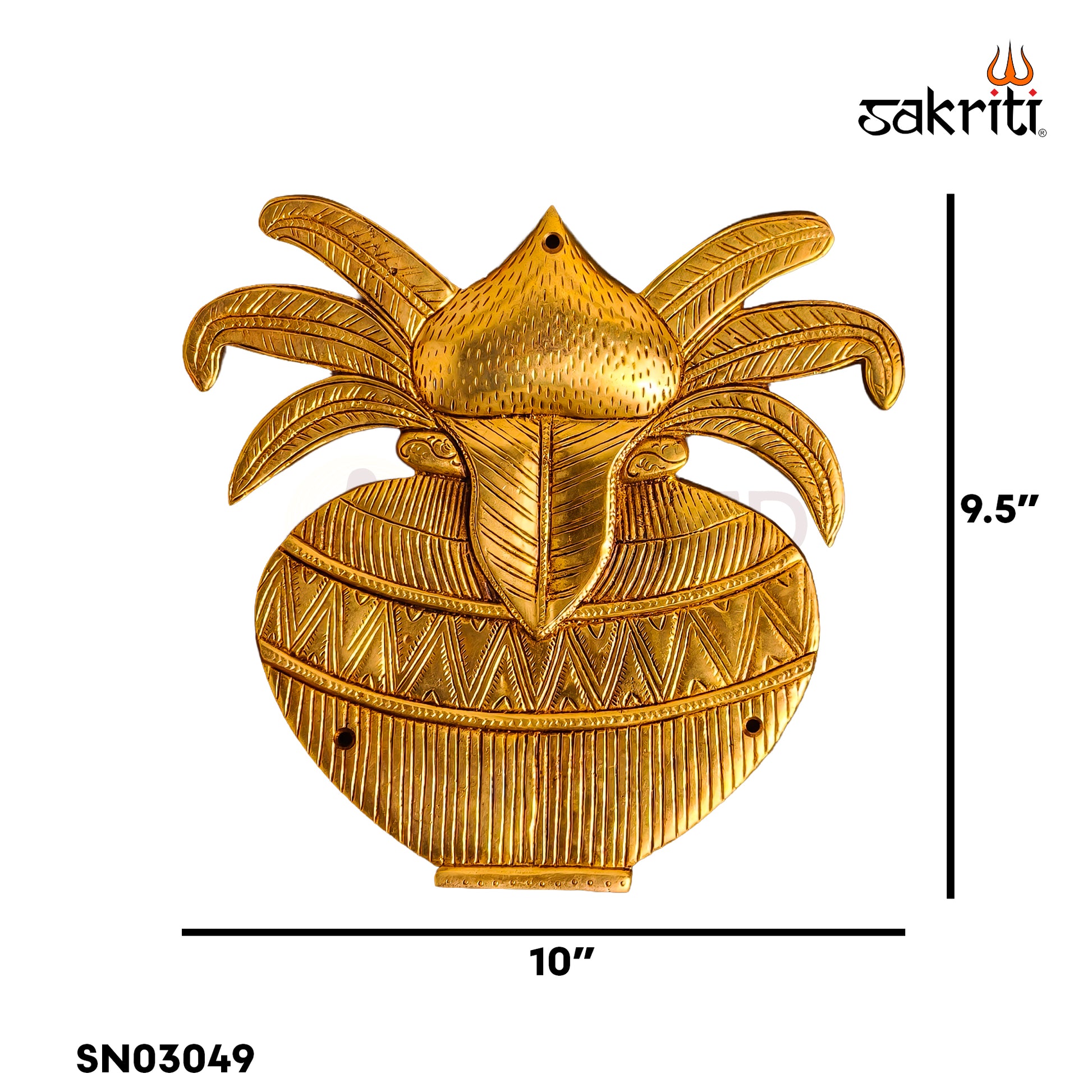 With a height of 9.5 inches, this wall mount is compact yet visually striking, making it suitable for entrances, pooja rooms, and sacred spaces. The sturdy brass construction ensures durability, while the classic design enhances the spiritual ambience of your home.