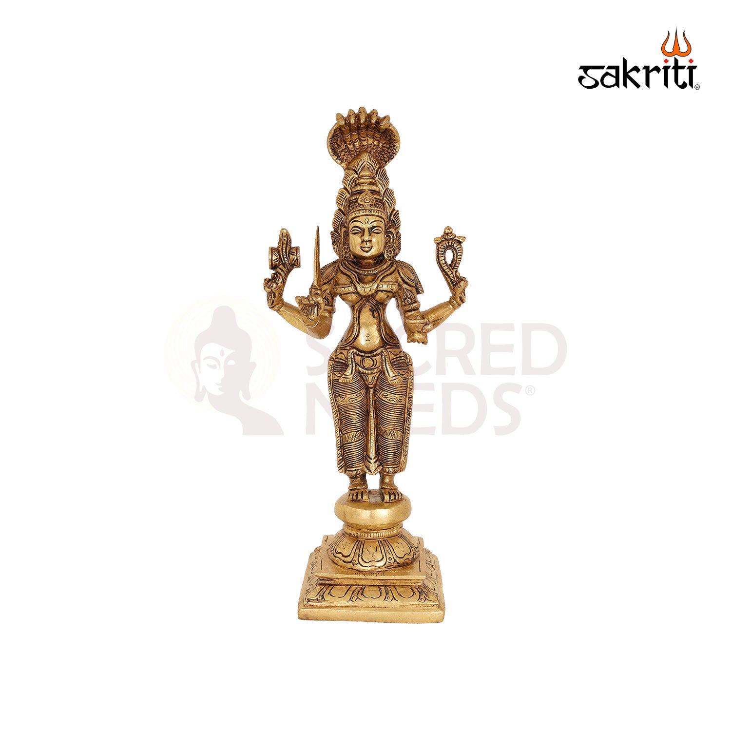 Brass Karumari amman is a powerful goddes, the goddes is finely crafted with minute details that makes the goddes look defined and divine, The Yellow Antique finish makes it eye catching..!