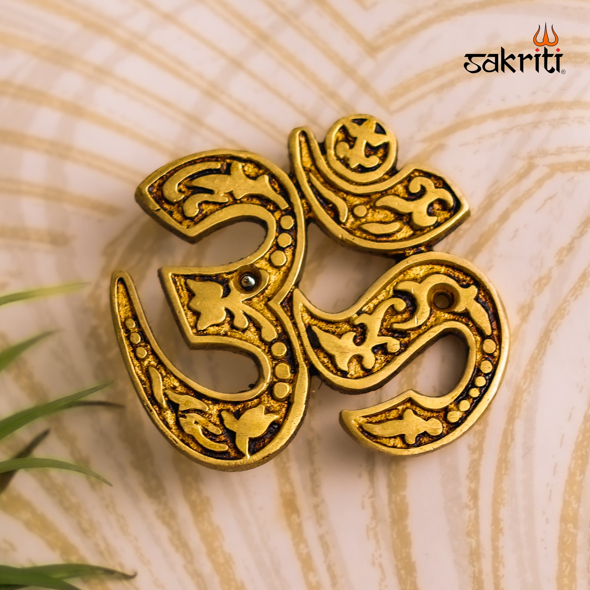 Brass Om Wall Mount – 3.2 Inch Auspicious Brass Wall Decor for Pooja Room, Home Entrance & Vastu