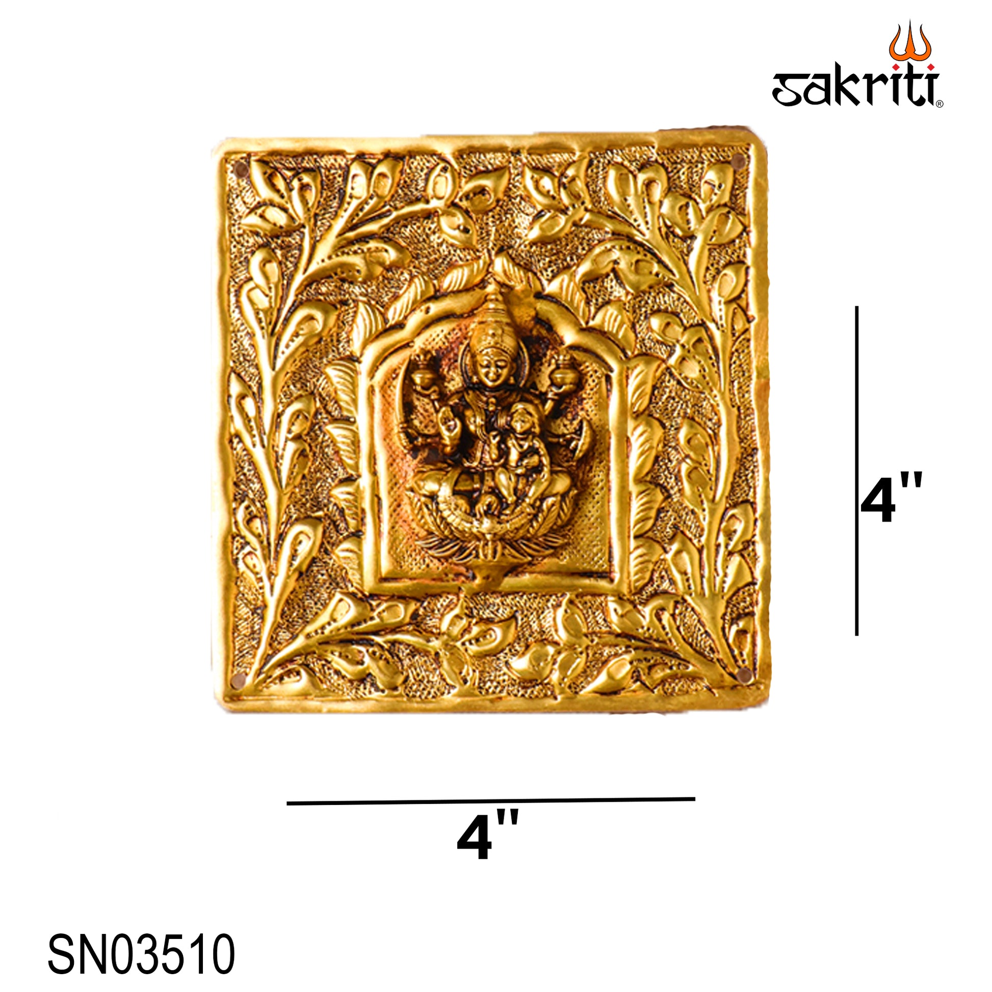 Brass Square Astalakshmi Wall Mounted Plate – 4 Inch Traditional Lakshmi Wall Decor for Pooja Room & Temple