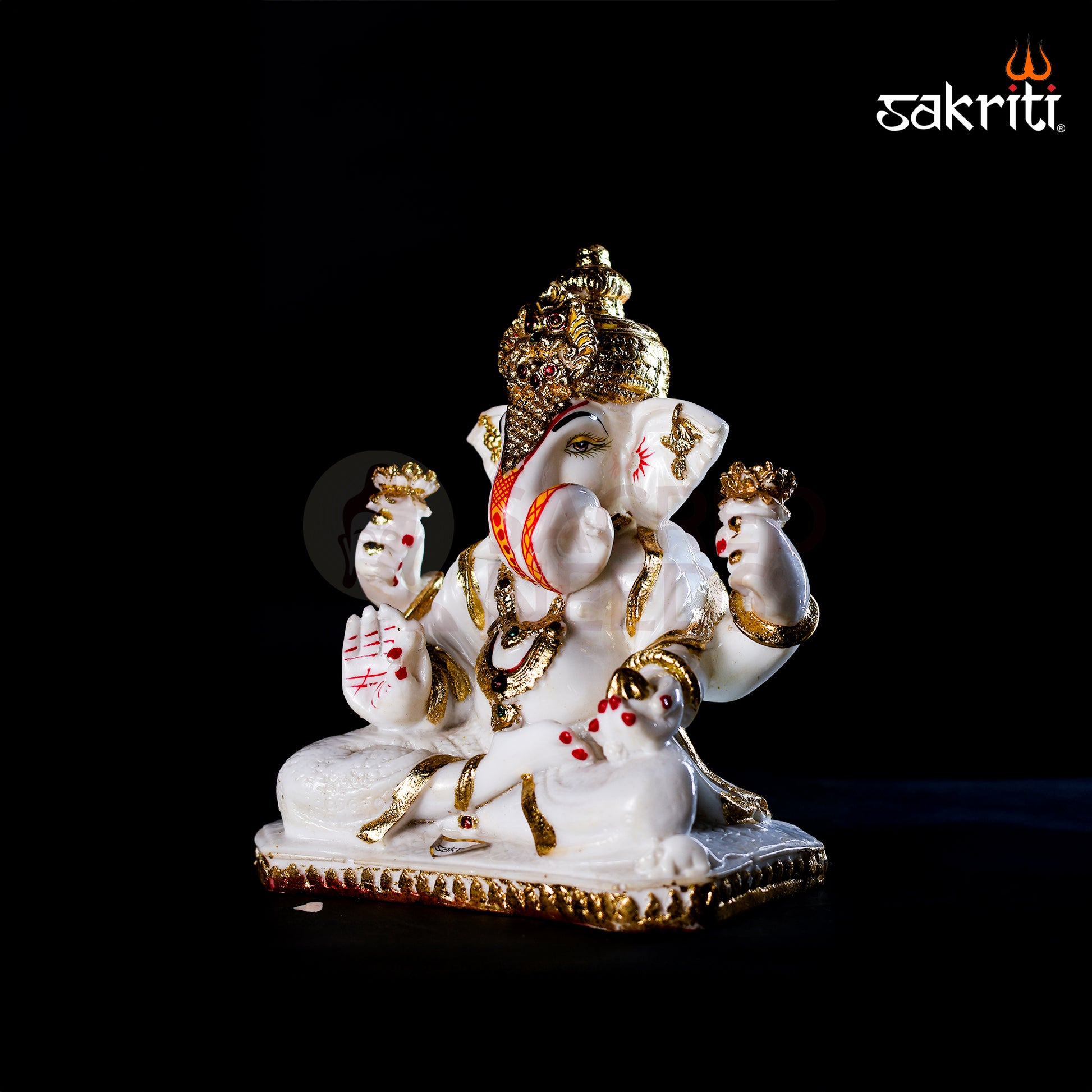Marble Dust Dagru Ganesha – 9 Inch Height | Pooja Room & Home Decoration