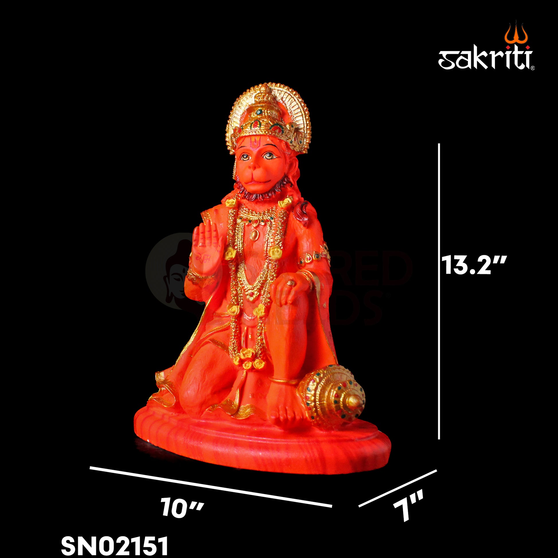 Marble Dust Hanuman Sindoor – 13.2 Inch Height | Devotional Idol for Pooja Room, Temple & Home Decor