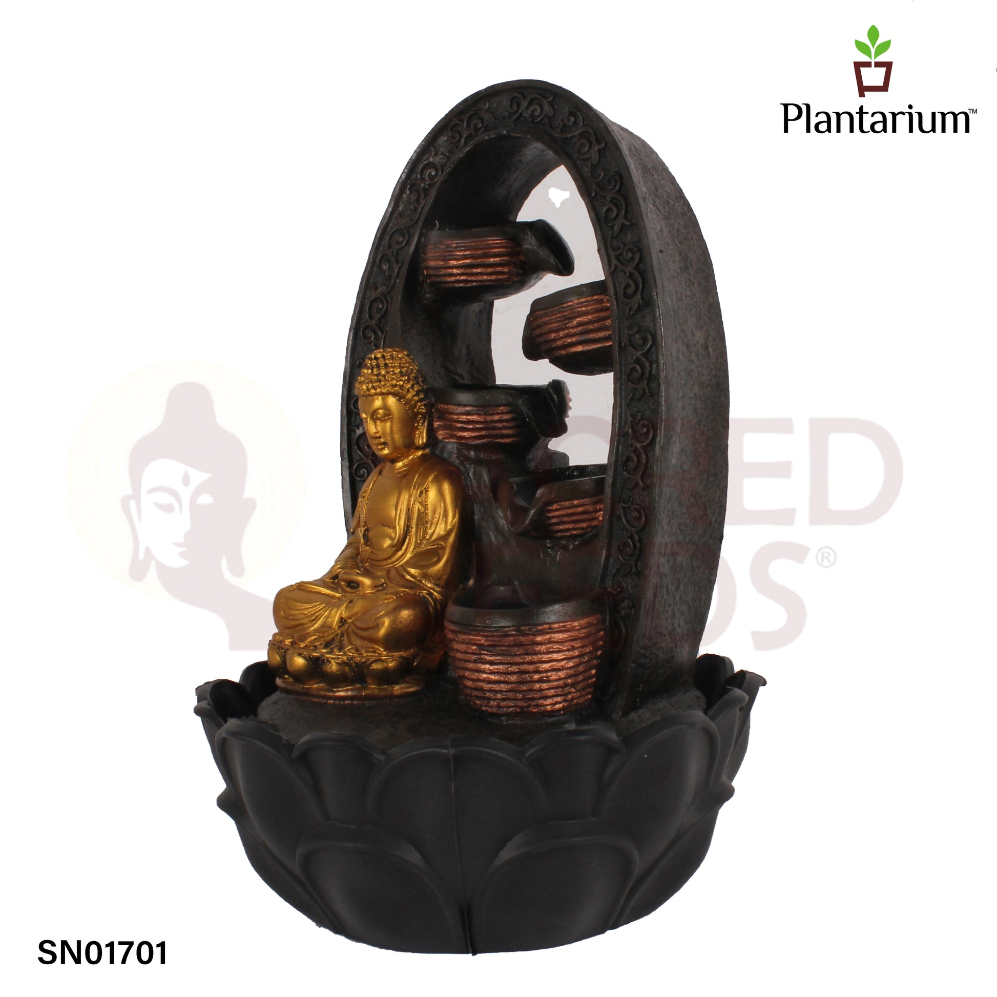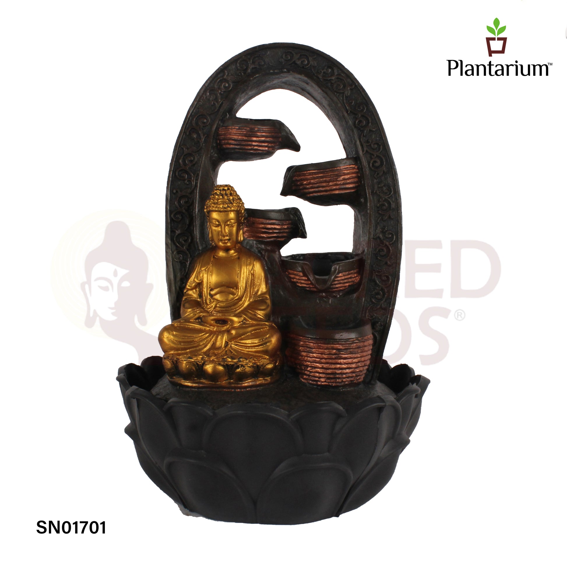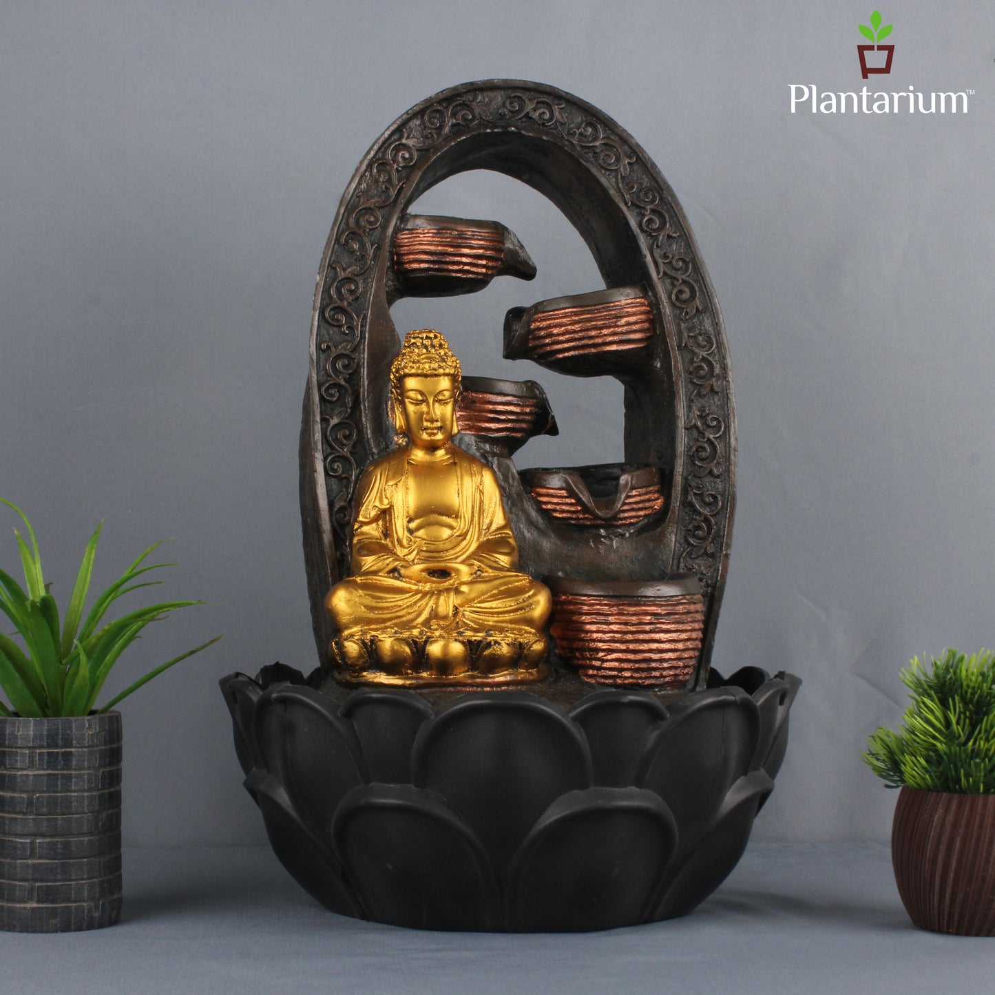 Polyresin 4 Step Buddha Fountain – 16 Inch Relaxing Zen Fountain for Home & Office Decor