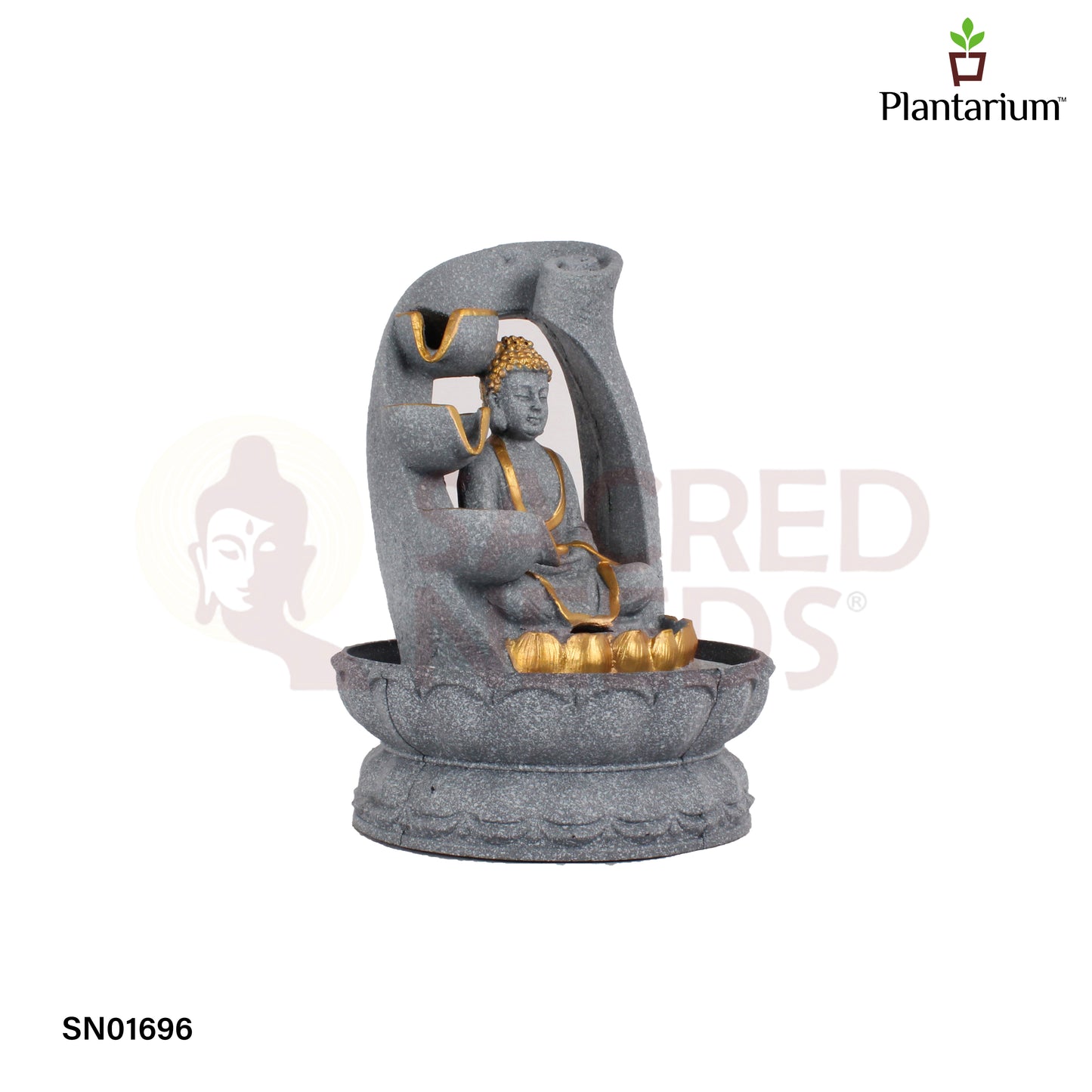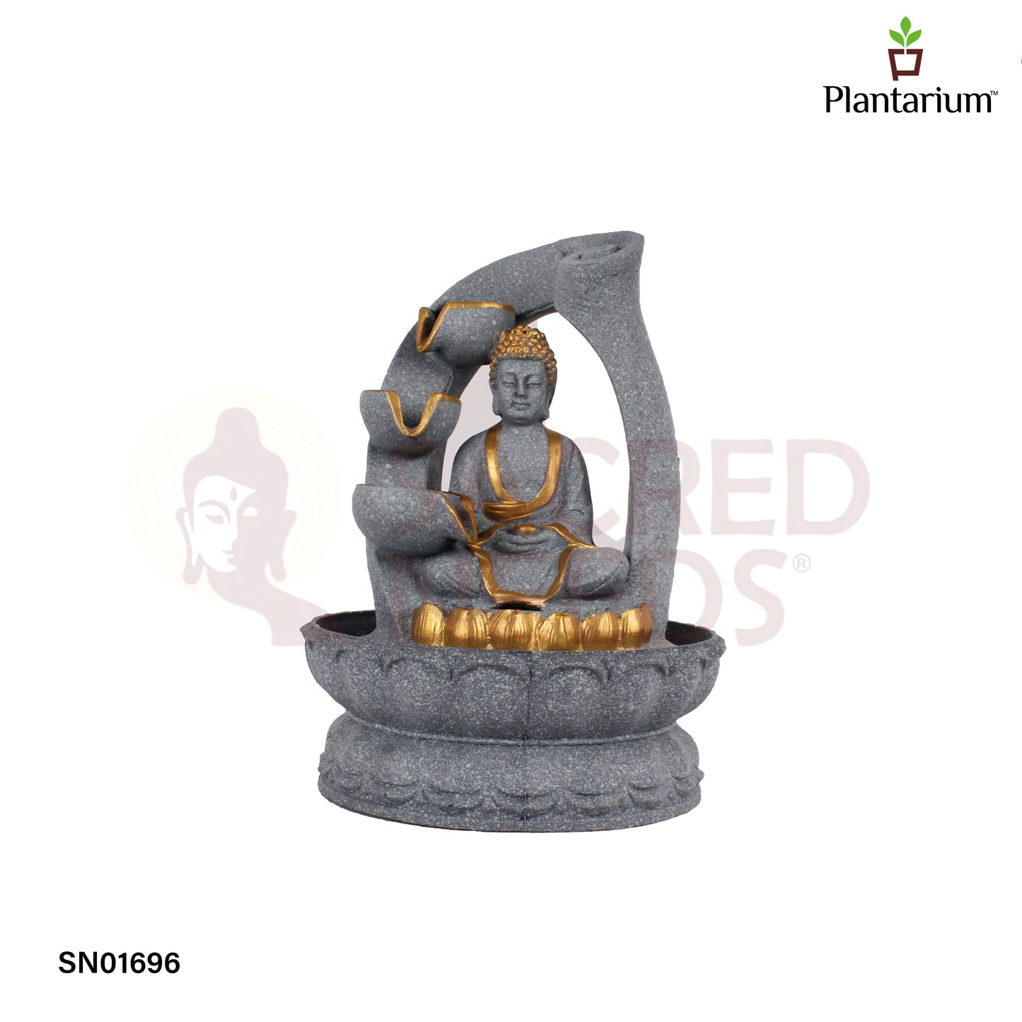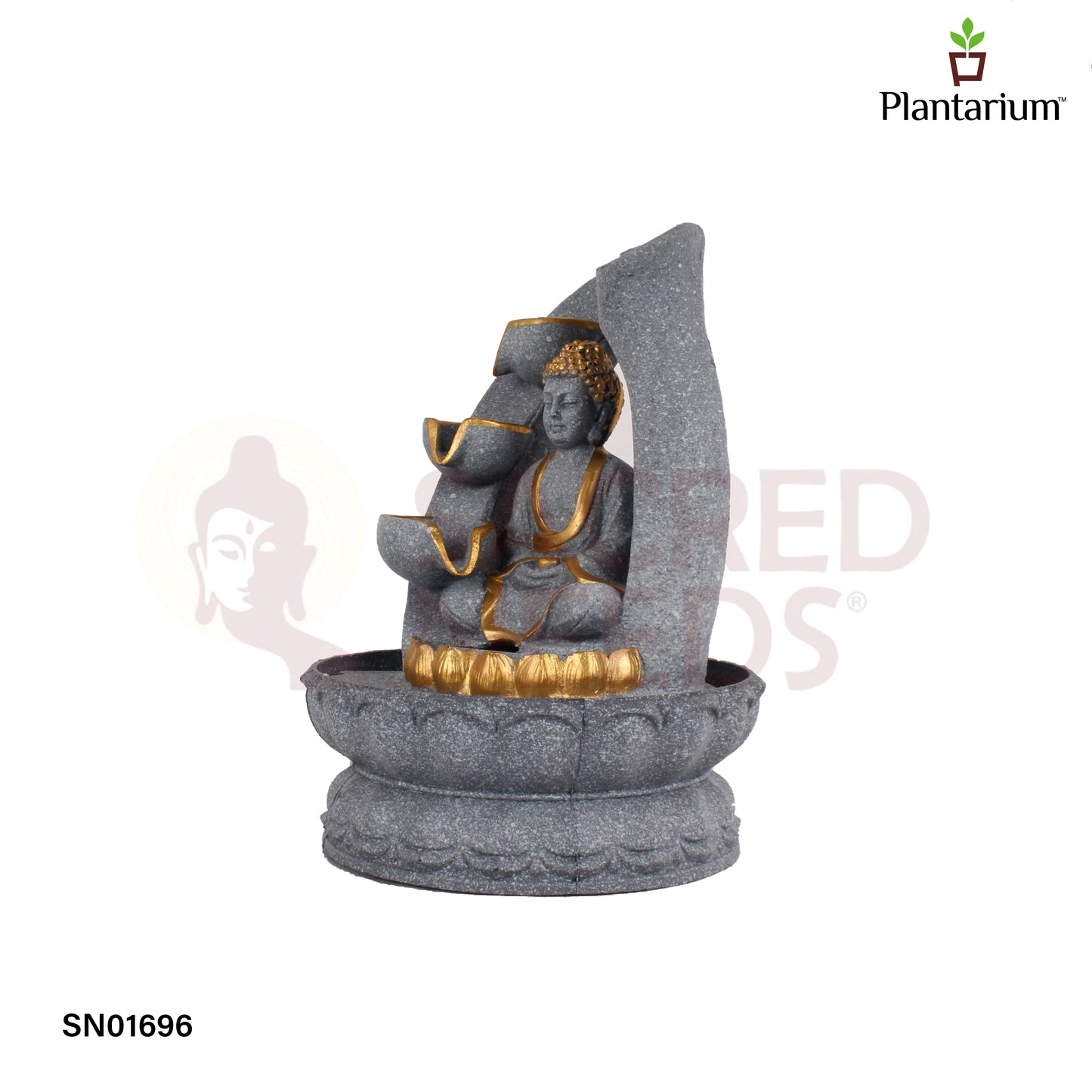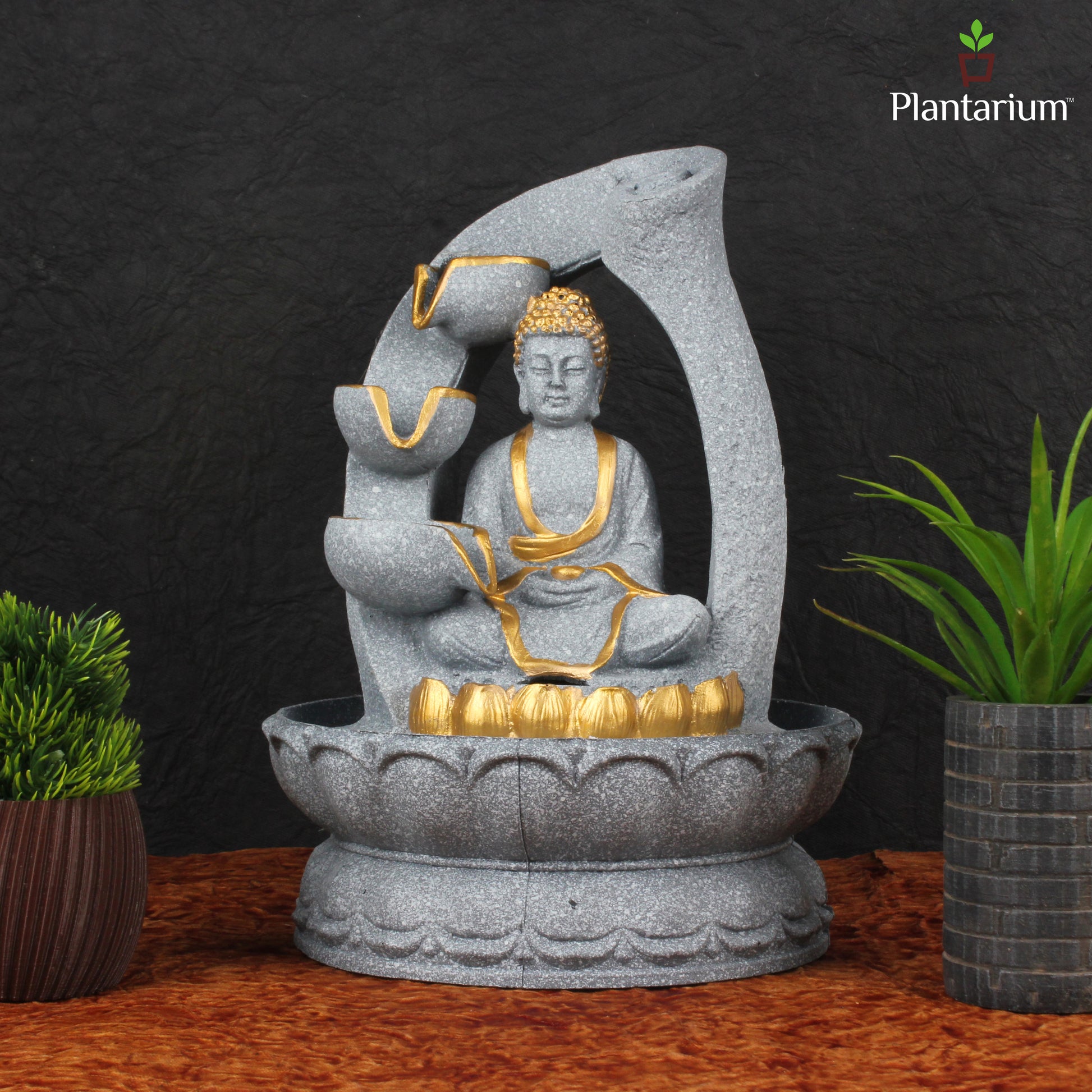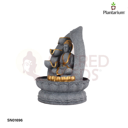 Polyresin Grey Buddha Fountain – 10.5 Inch Zen Style Water Feature for Home or Office