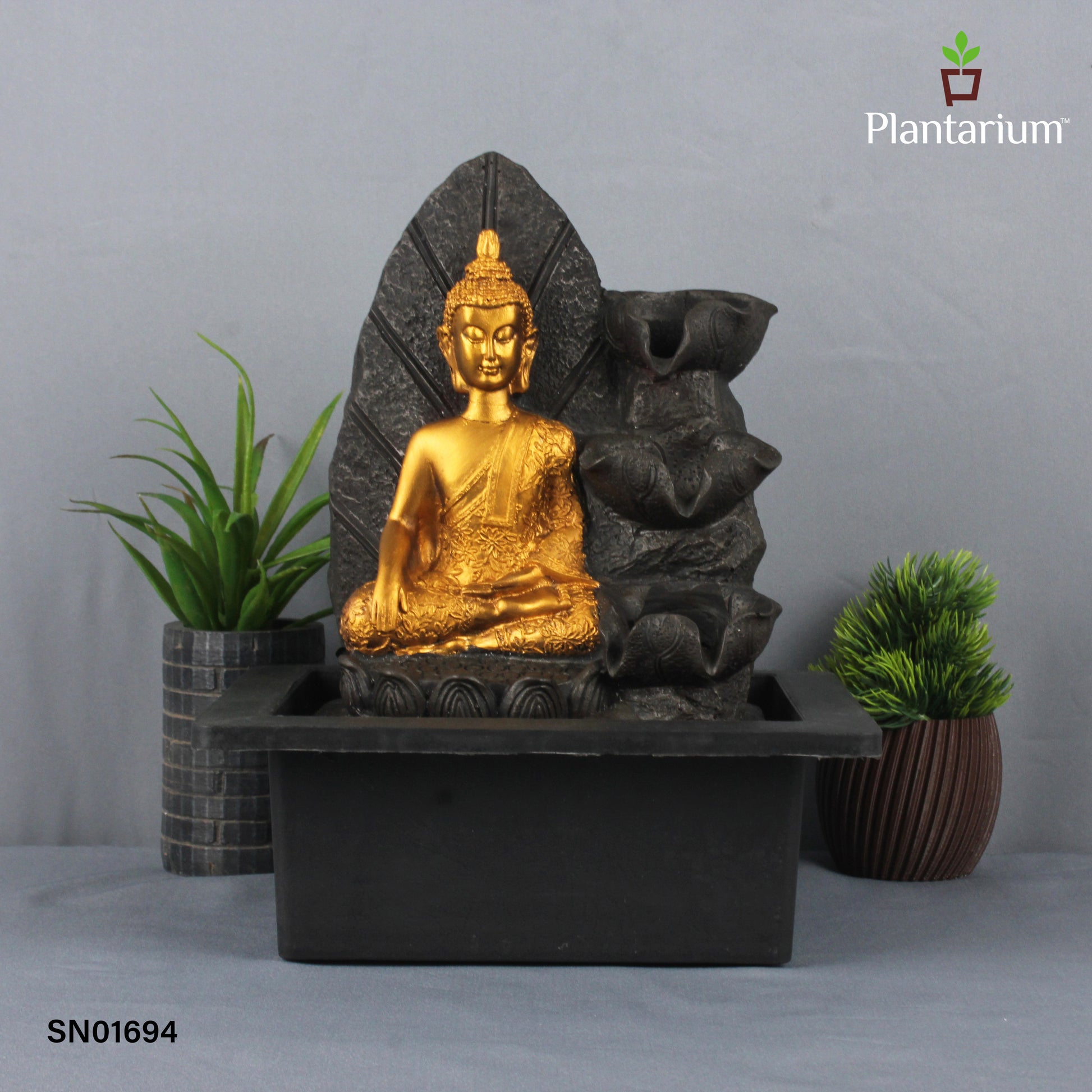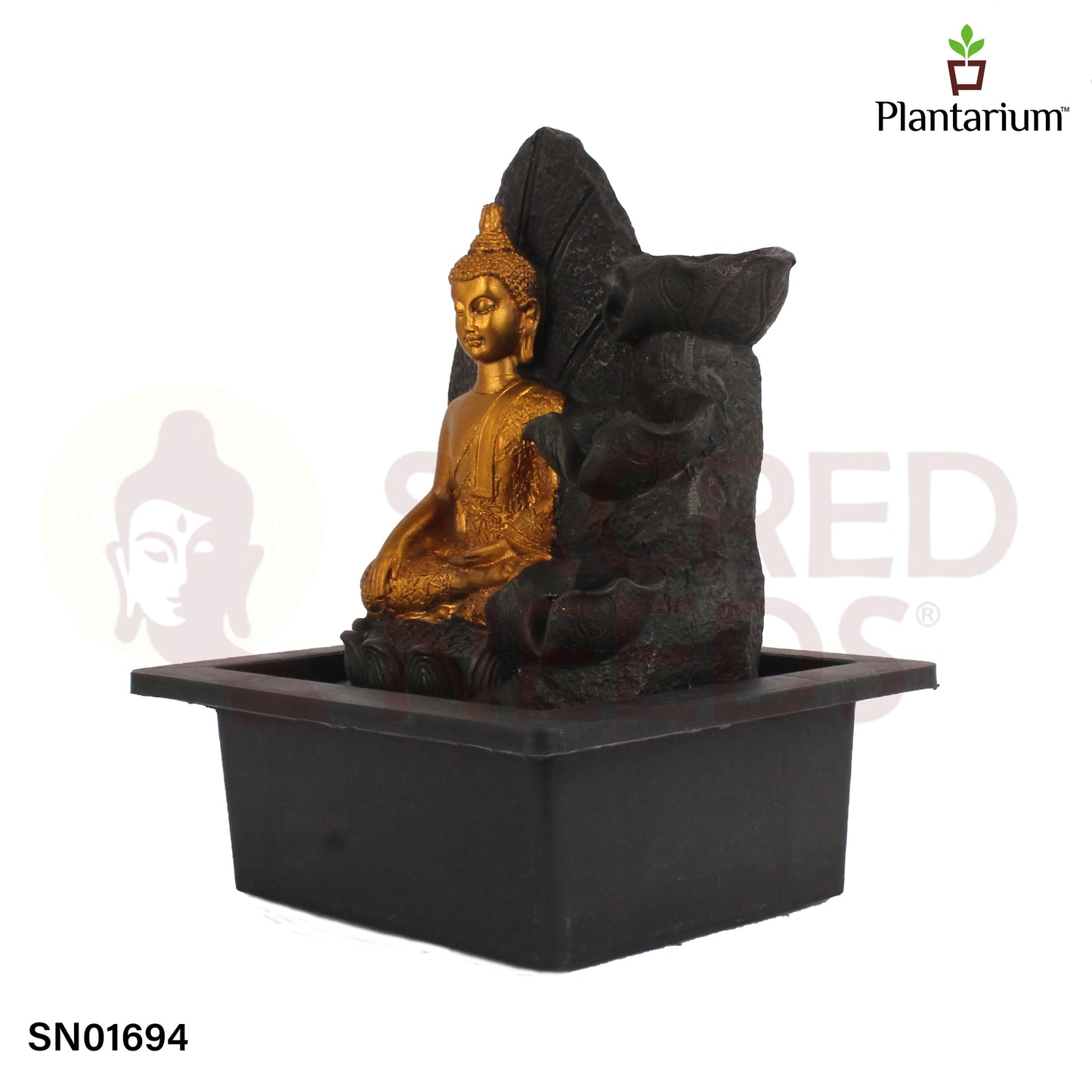 Polyresin Lotus Buddha Fountain – 11.3 Inch Tabletop Fountain with Lotus Base for Calm Ambience
