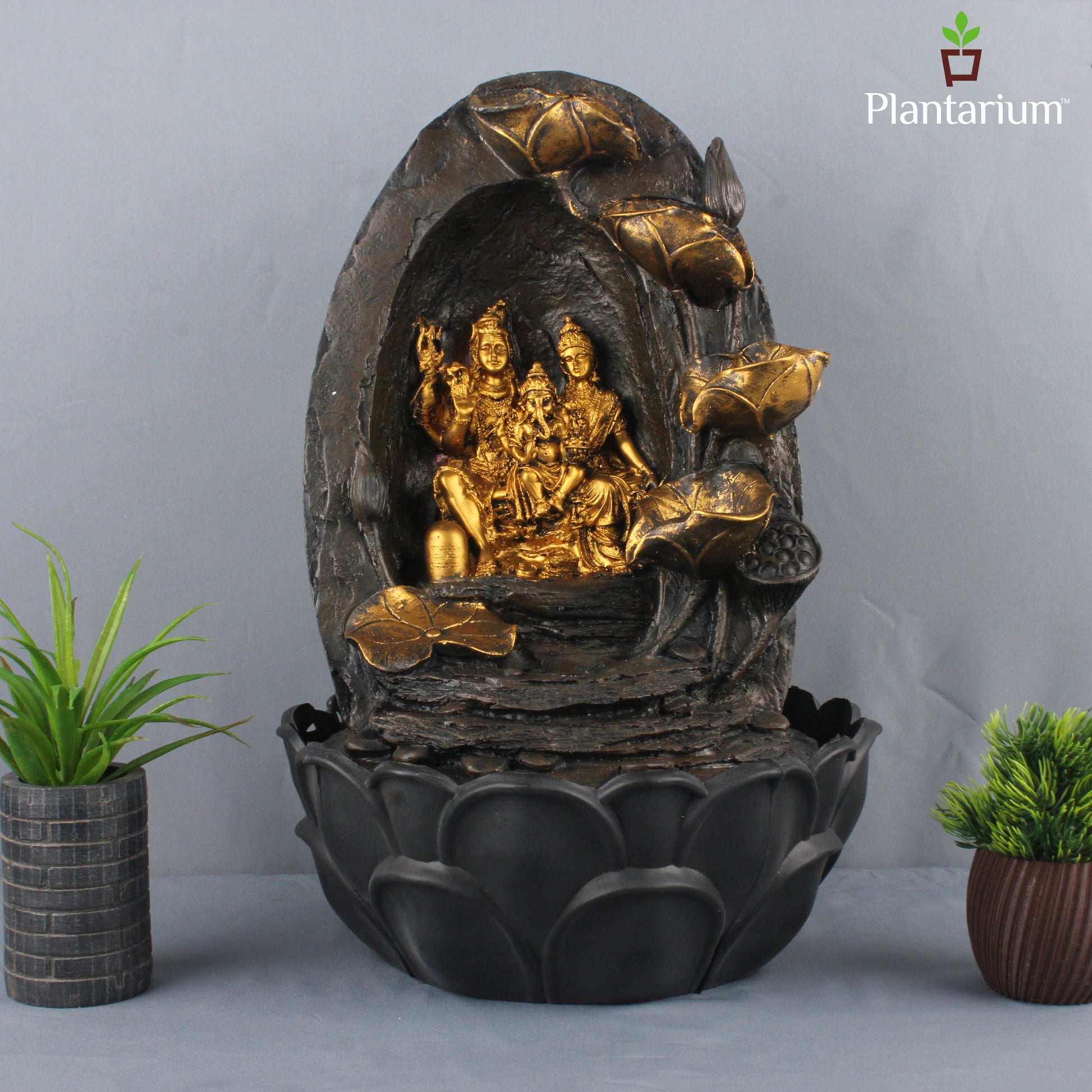 Polyresin Siva Parivar Fountain – 16 Inch Family of Shiva Indoor Water Fountain for Serenity